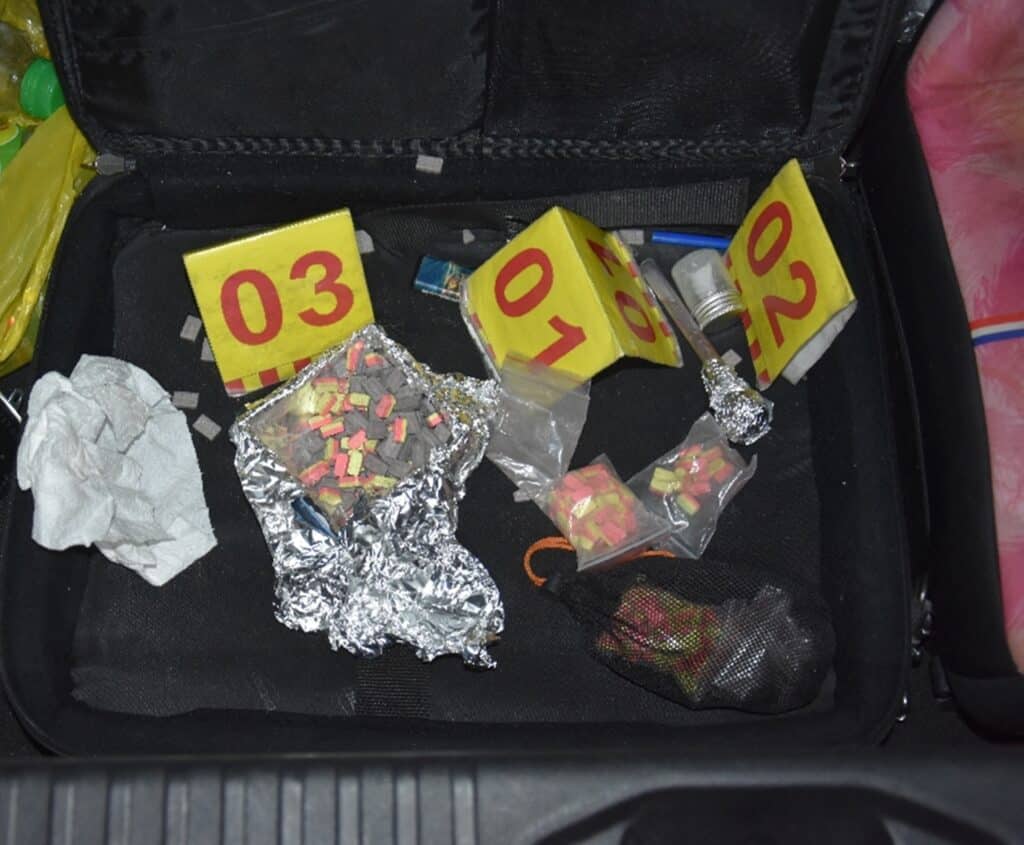 A hálószobában elrejtve bruttó 109 gramm droggyanús tablettát találtak részint összezúzott állapotban, részint egészben. Kábítószer-kereskedelem gyanúja miatt vették őrizetbe a párt, a lefoglalt anyagokat pedig szakértő bevonásával vizsgálják.