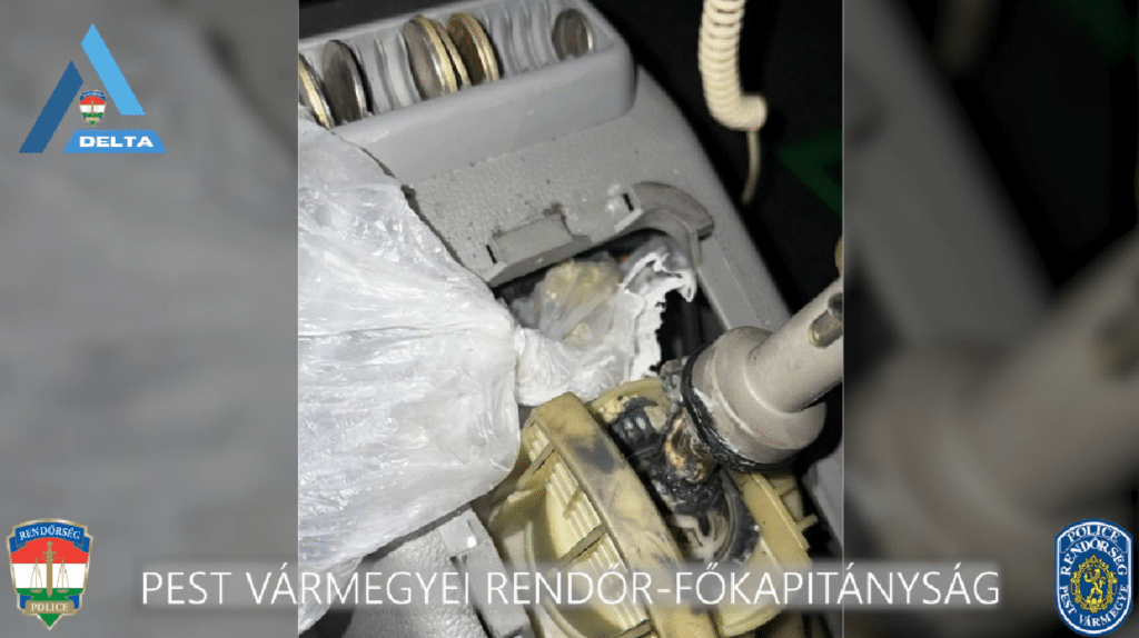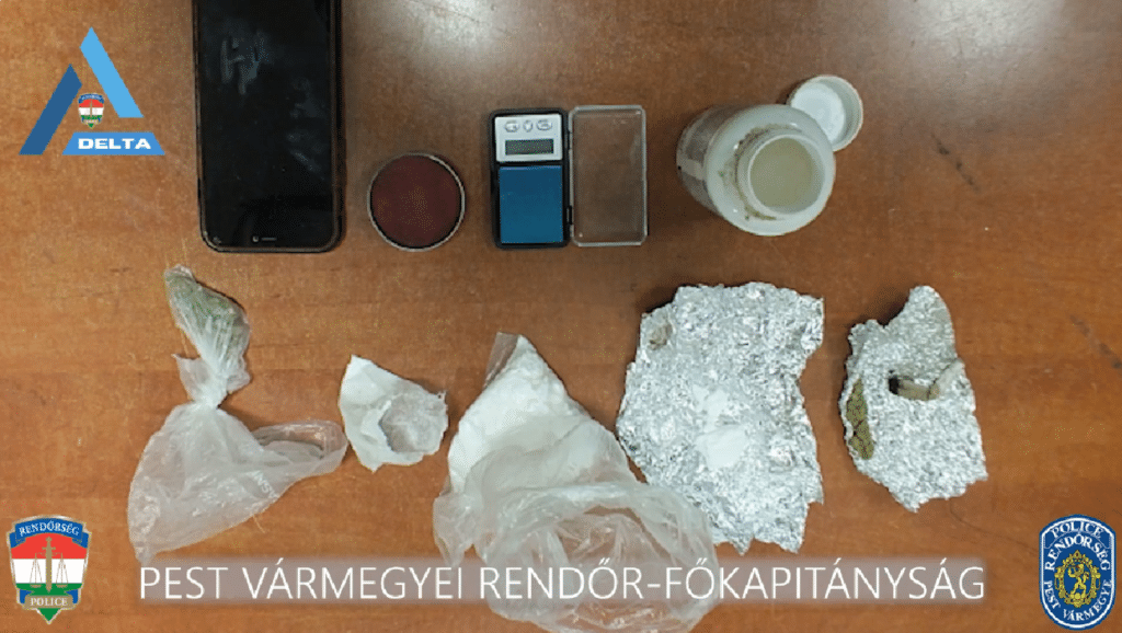 A járőrök a jármű átvizsgálása során a váltóburkolat alatt, egy nagyobb zacskóban zöld növényi törmeléket találtak. Emellett több műanyag tasakban fehér, droggyanús porra bukkantak, valamint az utastérből egy digitális mérleg és egy dohányőrlő is előkerült.