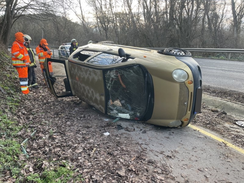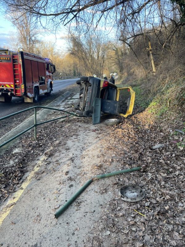 Baleset történt kedden reggel a 12-es főút 1-es kilométerénél, Vác térségében, ahol egy személygépkocsi az oldalára borult. A járműben csak a sofőr utazott, aki önerőből ki tudott szállni az autóból.