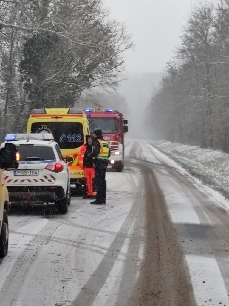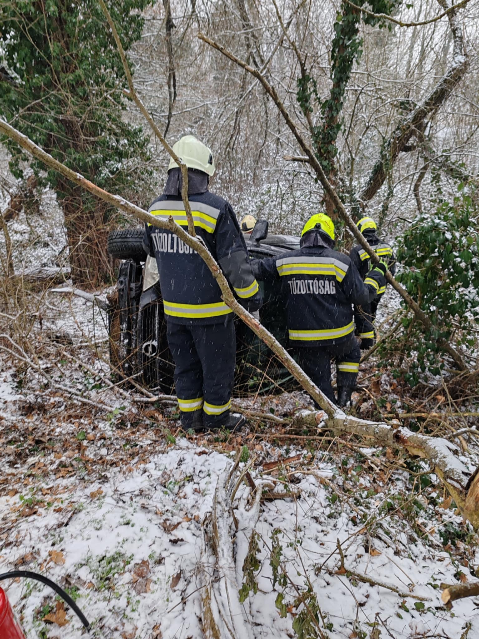 Megcsúszott egy autó a havas úton Vindornyaszőlős külterületén, majd az út menti fák közé sodródva az oldalára borult. A keszthelyi hivatásos tűzoltók elsőként érkeztek a helyszínre, ahol a jármű biztosításáról gondoskodtak a társszervek megérkezéséig.