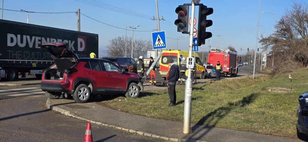 Két személygépkocsi karambolozott kedden délelőtt az 1-es főút 15-ös kilométerénél, Biatorbágy térségében, a baleset során az egyik jármű egy villanyoszlopnak csapódott, amely kitört.