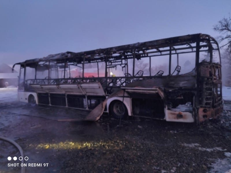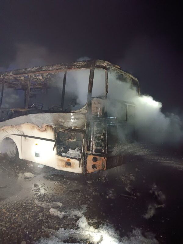Teljes terjedelemben égett egy autóbusz ma reggel Dobozon