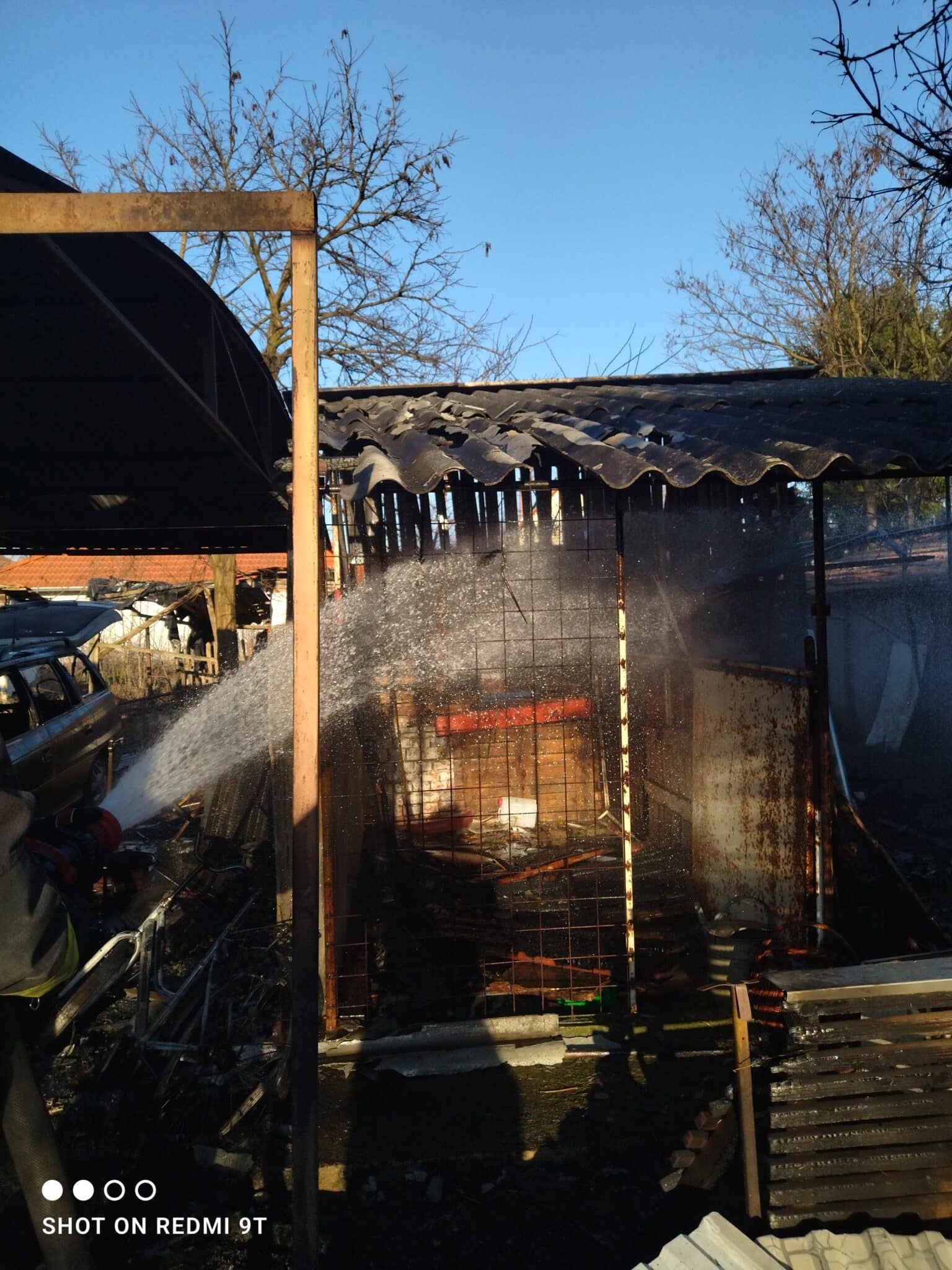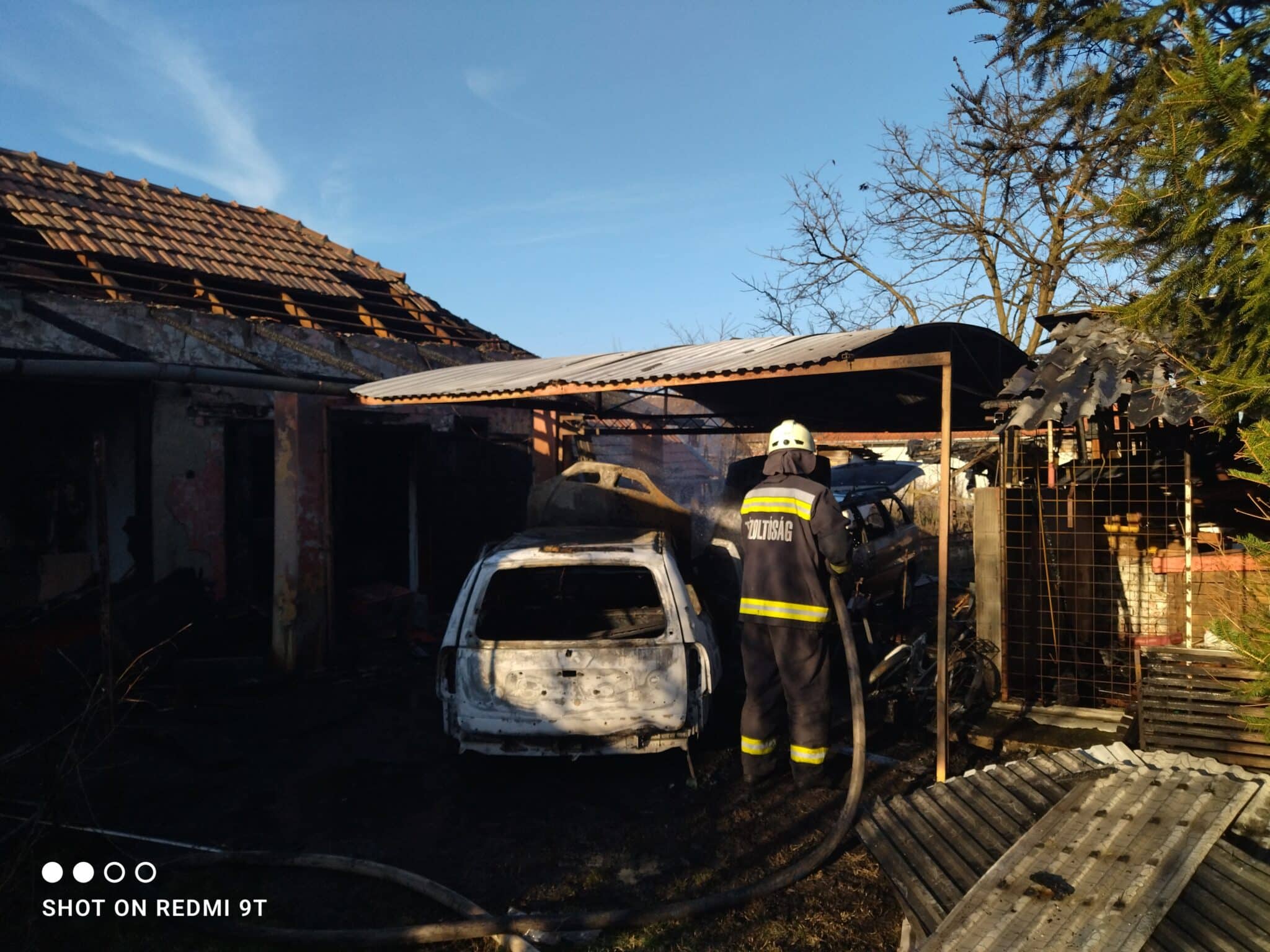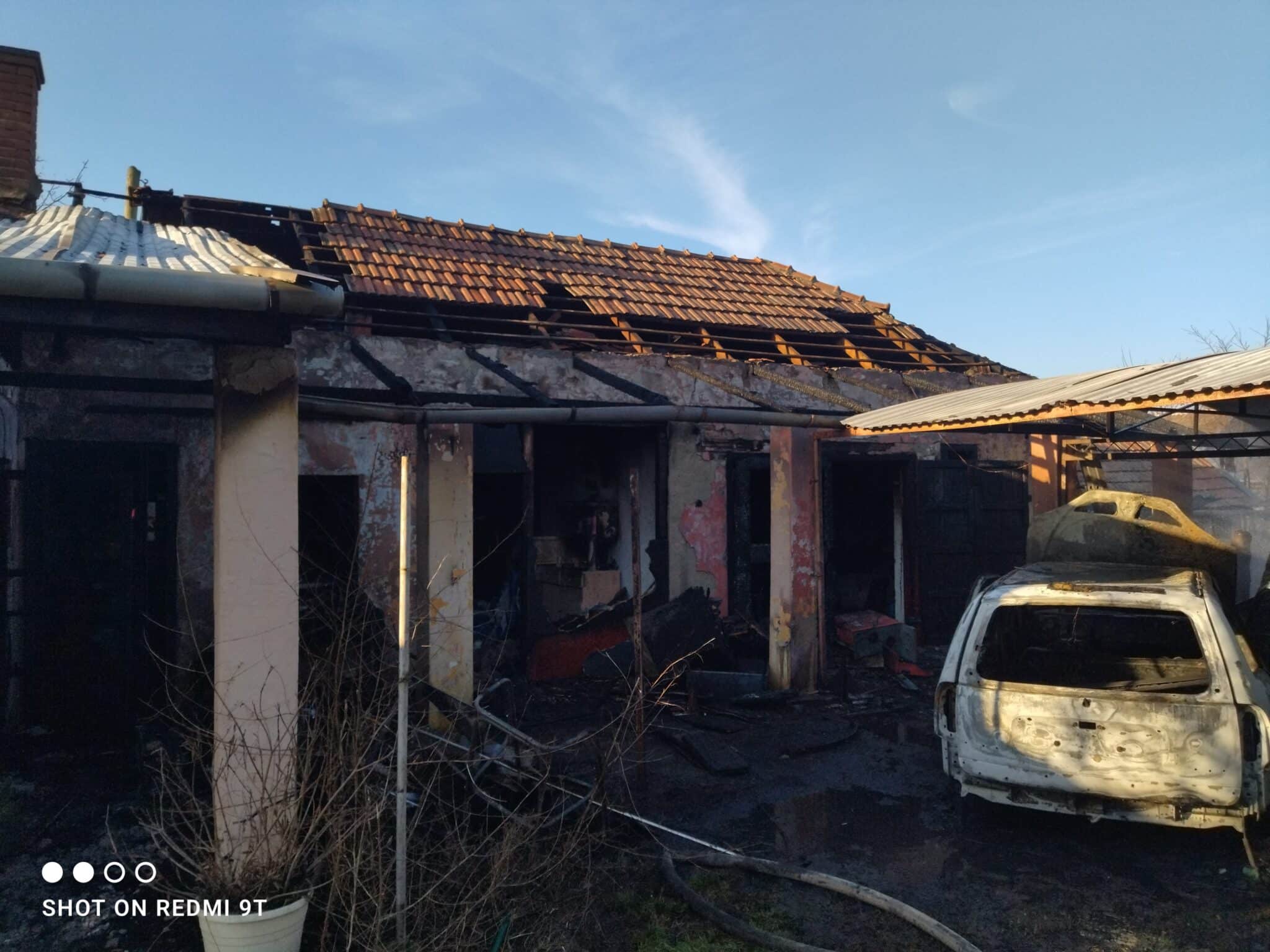 Nyitott szín alatt gyulladt ki egy személygépkocsi, majd a tűz átterjedt egy másik járműre, valamint a színhez épített melléképületre és a főépület tetőszerkezetére is.