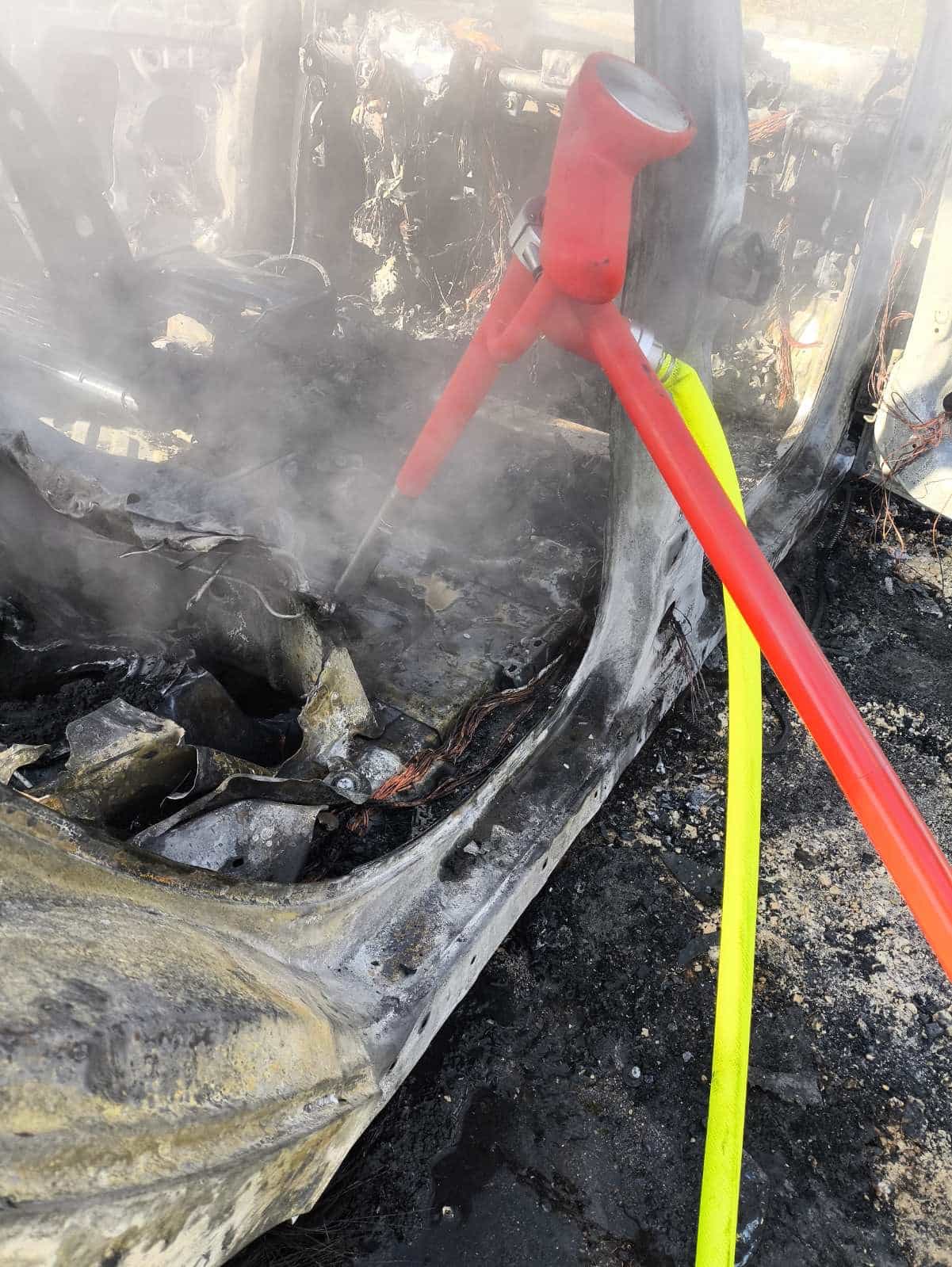 Ezért oltólándzsát alkalmaztak, amellyel közvetlenül az akkumulátorba juttattak vizet, így sikerült visszahűteni a felforrósodott cellákat.