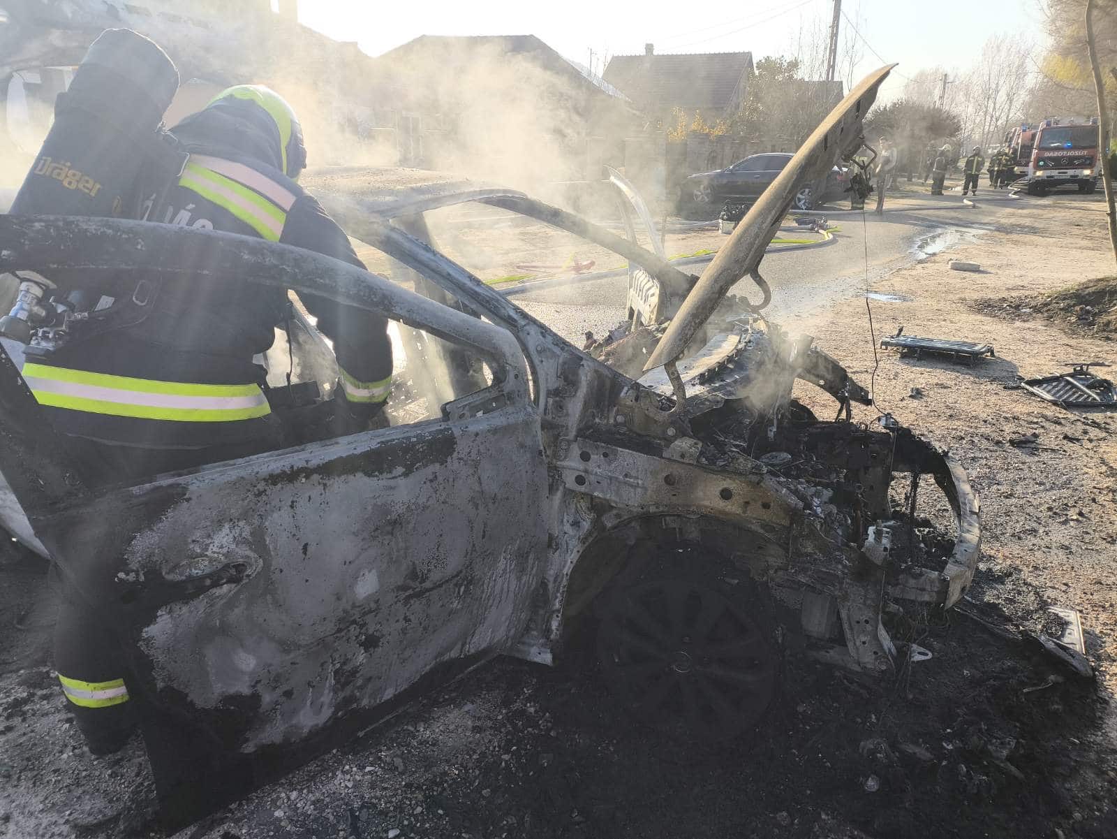 A katasztrófavédelem kiemelte: bár az elektromos autók tüzei látványosak, nem gyullad ki belőlük több, mint a hagyományos járművekből. Az esetek többségében nem is az akkumulátor, hanem az autó más része kap lángra.