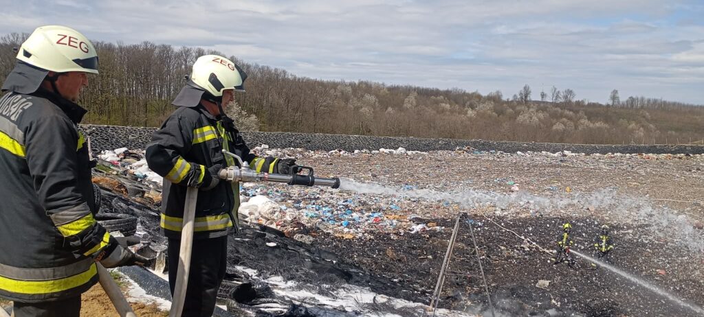 A tűz közel ezer négyzetmétert érintett, ahol kommunális hulladék és gumiabroncsok égtek. A zalaegerszegi és a pacsai hivatásos tűzoltók a vármegyei katasztrófavédelmi műveleti szolgálat irányítása mellett avatkoztak be. Az oltáshoz két vízsugarat és két habsugarat használtak, az utánpótlást pedig Keszthelyről és Szombathelyről érkező vízszállítók biztosították. A folyamatot egy munkagép is segítette, amely megbontotta a hulladékot, így a rajok eloltották a még izzó, égő részeket is.