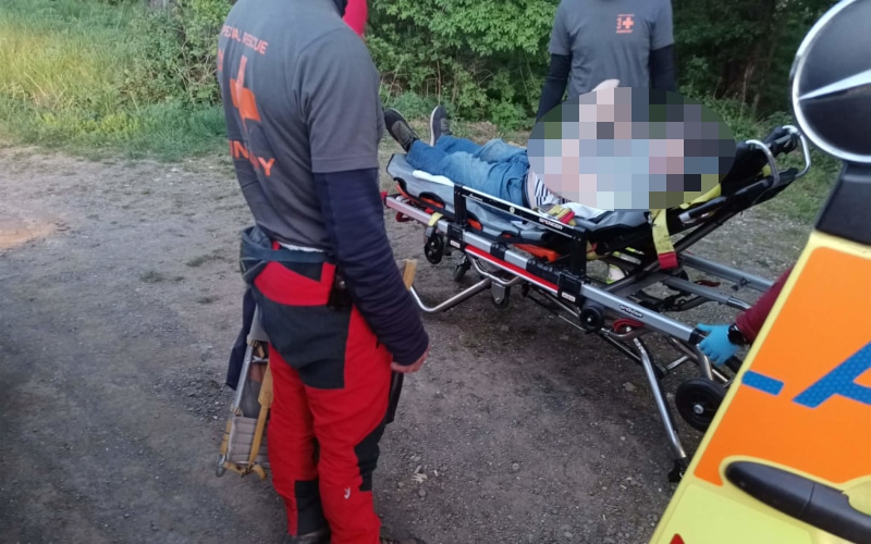 A mentőcsapat mintegy 1200 méteren, nehéz terepviszonyok között szállította a sérültet a Panoráma út végéig, ahol már mentőautó várta.