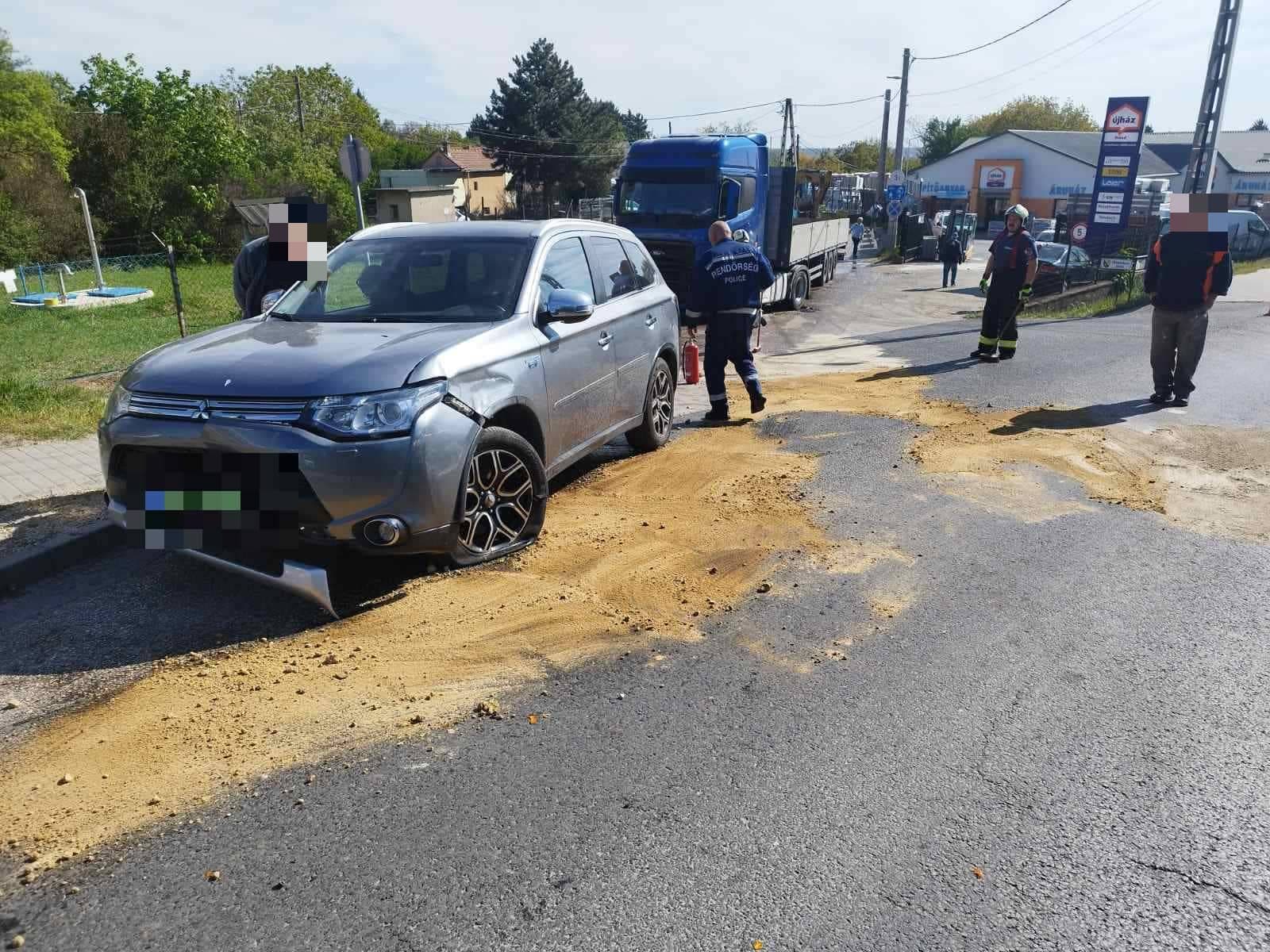 Kamion és egy személygépkocsi karambolozott csütörtök délután Diósdon, a Homokos utcában. Az ütközés következtében a teherautó üzemanyagtartálya felhasadt, és nagy mennyiségű gázolaj folyt az úttestre.