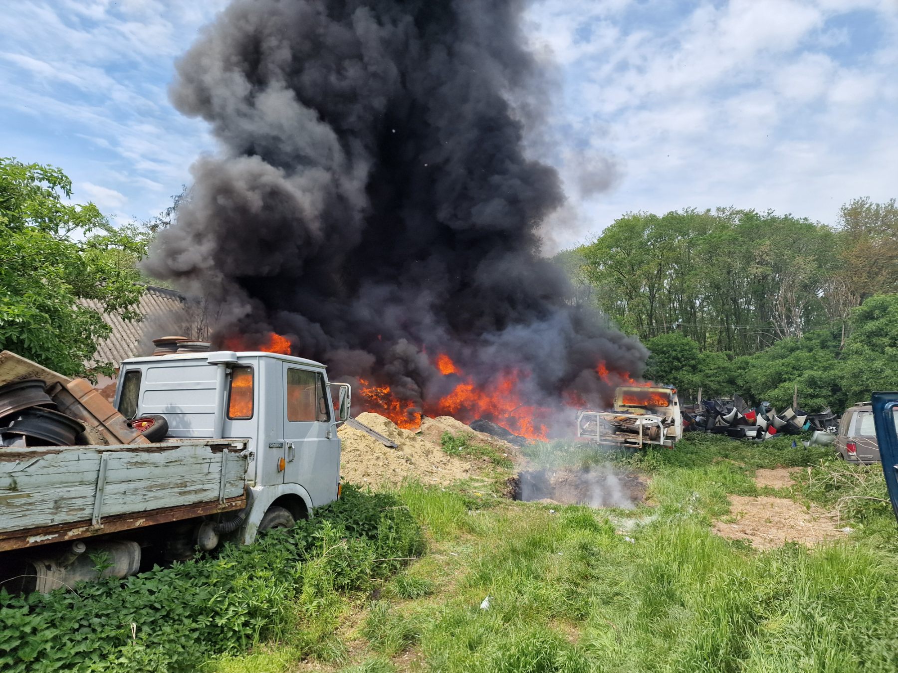 Teljes terjedelmében égett egy gépjárműalkatrészek tárolására használt melléképület tetőszerkezete hétfőn Pápa külterületén, Mátyusháza pusztán. A lángok az ott tárolt alkatrészekre és három járműre is átterjedtek. Személyi sérülés nem történt.