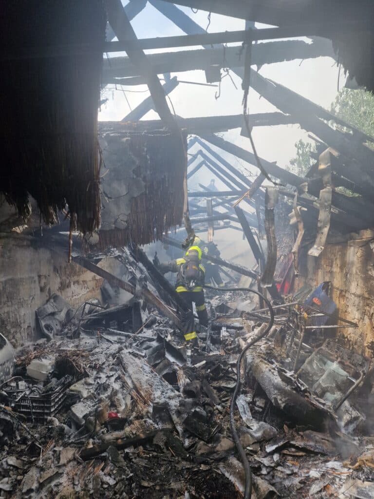 A pápai és az ajkai hivatásos tűzoltók négy vízsugárral oltották el a tüzet és fékezték meg a lángokat.