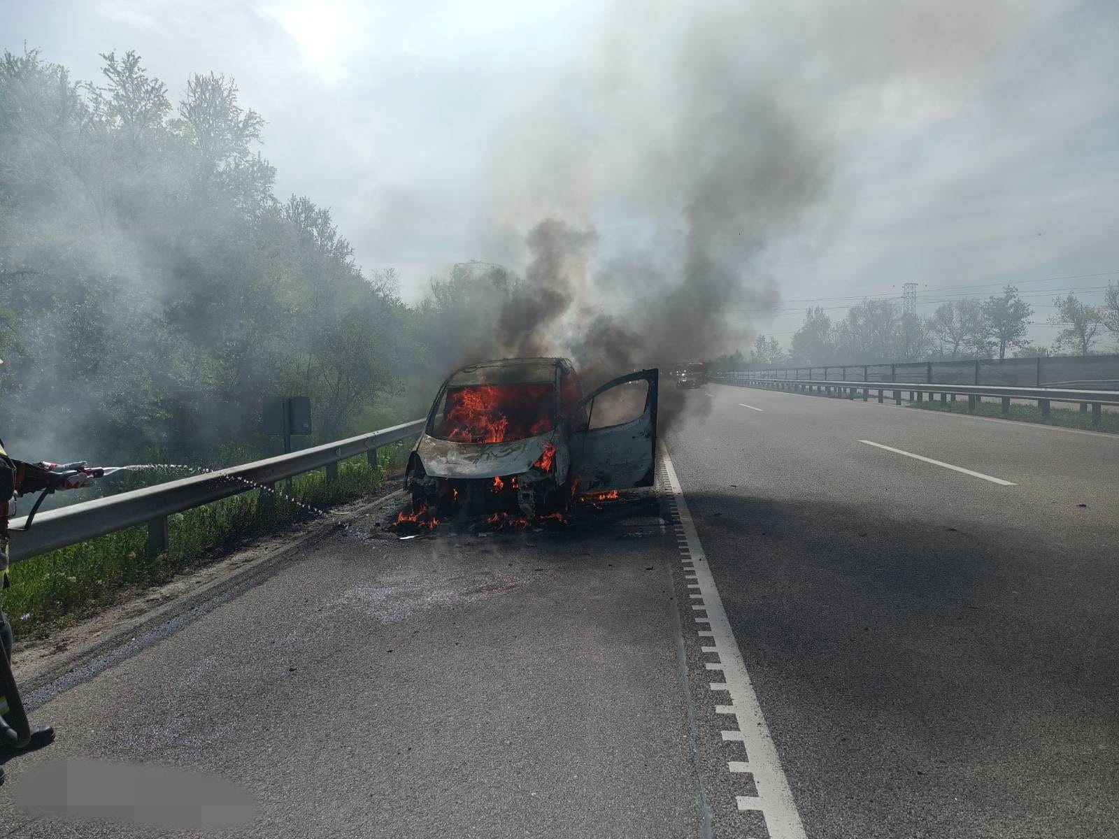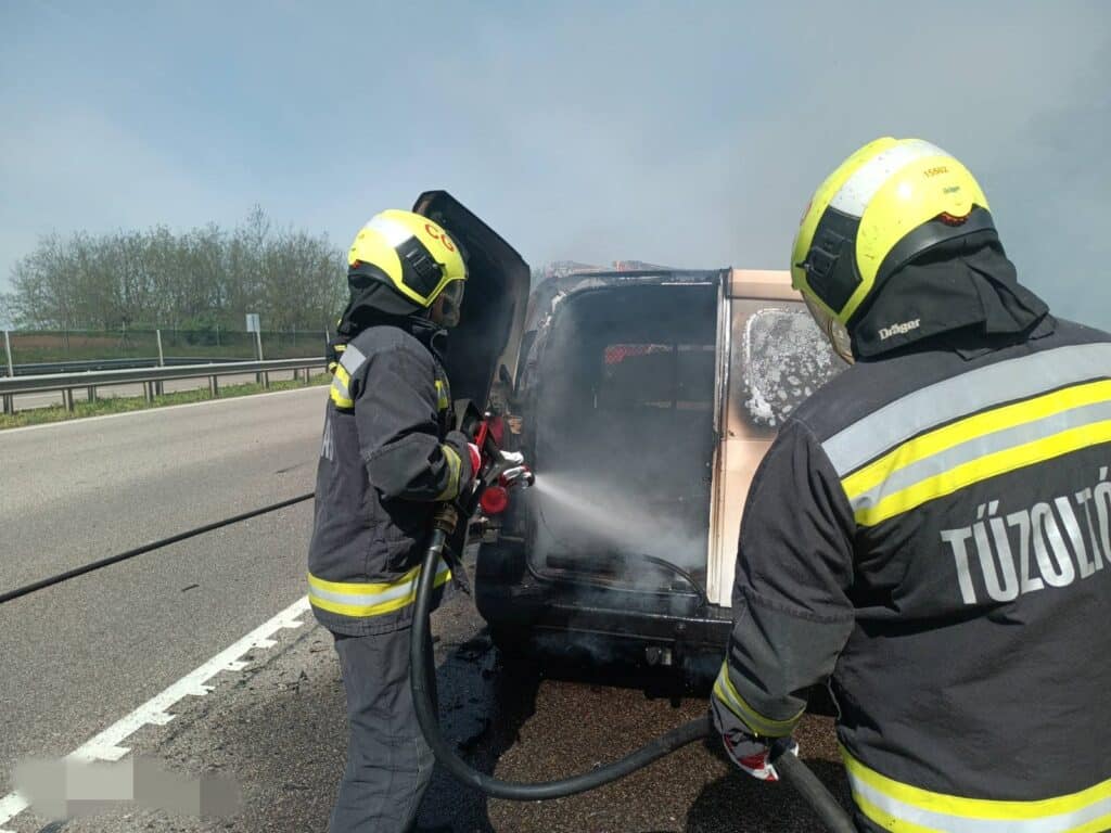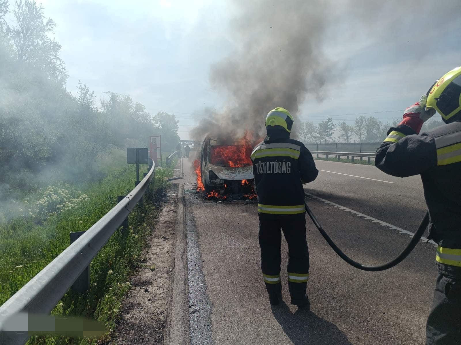 Kedden délelőtt az M4-es autóút 60-as kilométerénél, Ceglédbercel közelében egy személygépkocsi motorterében keletkezett tűz menet közben. A jármű a tűzoltók kiérkezésére teljes terjedelmében égett, a sofőr egyedül utazott az autóban.