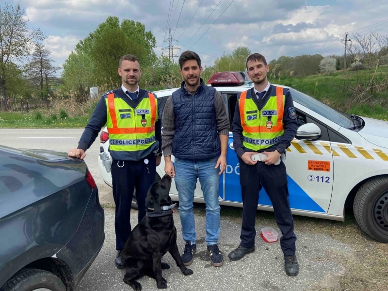 A kaposvári rendőrök sebességmérés közben egy kóbor kutyára bukkantak a Deseda tóhoz vezető úton. Az egyenruhások a nyakörvön található QR-kód segítségével azonosították az állatot, majd átadták a tulajdonosának.