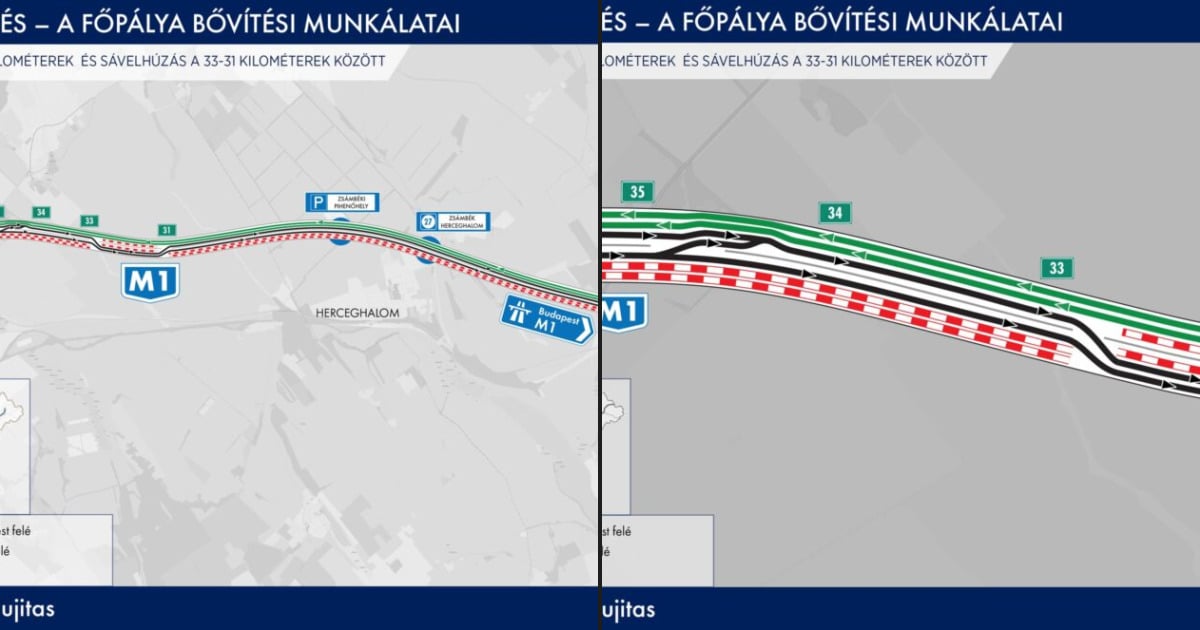 A korlátozás ideje alatt a Budapest felé tartó forgalom két sávon haladhat: az eddigi átterelt sávot a műszaki átjárón keresztül visszavezetik a főváros felé vezető oldal külső sávjára, míg a másik sávot a munkaterület mellé irányítják.
